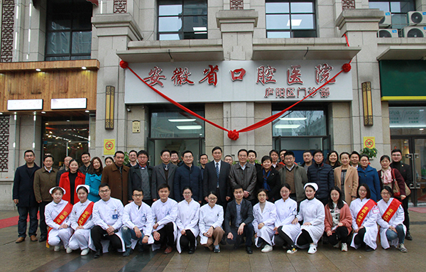 我校附属口腔医院院党委书记王贵松、院长何家才等和庐阳区卫计局、海棠街道相关领导出席了开诊仪式。附属口腔医院部分科室负责人和护士长参加了开诊仪式。(附属口腔医院)