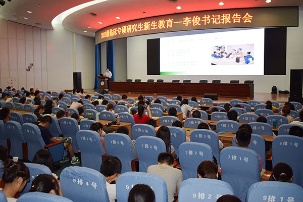 7月27日下午,校党委书记、博士生导师李俊教授为2018级临床医学、口腔医学硕士专业学位研究生作题为《大学理念与研究生责任》的新生教育报告。