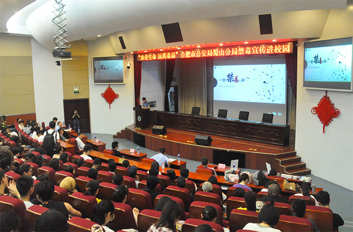 学校还在校图书馆第一学术报告厅举办了“禁毒知识大讲堂”。讲座中,三里庵派出所警官通过真实的案例分析和专业的知识讲解,向学生们普及了禁毒知识和拒毒警示,充分展示出公安干警在禁毒战线上的坚强形象和先进事迹,使禁毒宣传更加深入人心。互动问答环节中,学生踊跃参与、积极抢答,现场气氛热烈。参与学生纷纷表示,自己的禁毒拒毒意识在活动中得到强化,同时也激发了自身以实际行动参与禁毒斗争的决心与热情。