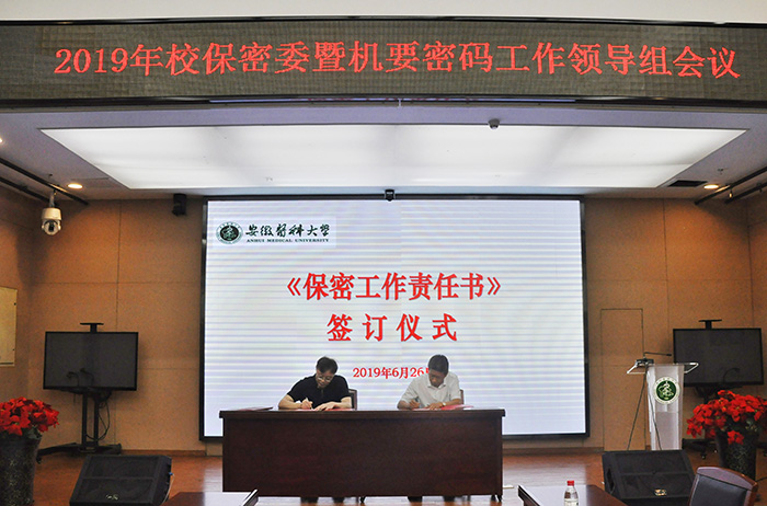 6月26日上午,学校召开2019年保密委暨机要密码工作领导组会议。校党委书记李俊主持会议并讲话,还与有关部门单位代表签订了《保密工作责任书》。校党委副书记刘群英传达中央和省委保密工作精神和要求,通报有关案例。副校长余永强、肖圣龙出席会议。