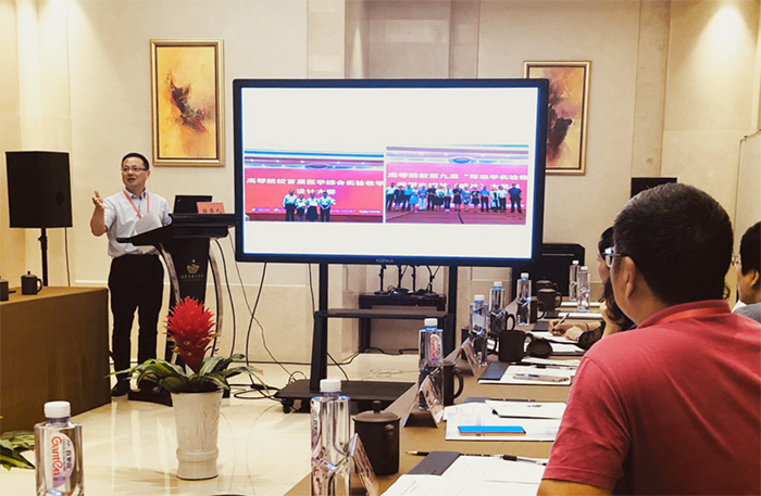 会上,我校实验教学中心主任代表该中心及基础医学院,就2018-2019年度我校医学生综合技能培训大楼及两个国家级中心的建设情况作汇报。(实验教学中心 张媛媛)