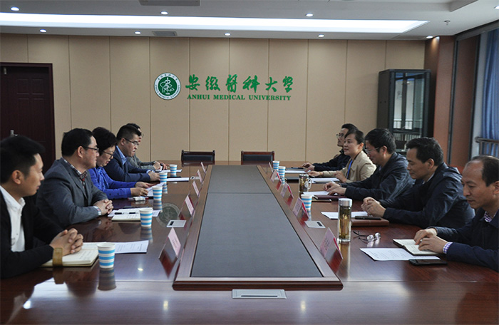 刘群英代表学校对孟玲玲、胡大勇一行来校接洽合作事宜表示热烈欢迎,对两家单位和公司长期以来给予我校研究生教育的支持和资助表示感谢。他指出,安徽东南外科医院作为我校研究生教育实践基地,支持和激励研究生开展科学研究和创新实践,一定程度上激发了研究生的创新能力,锻炼了其实践能力,有助于高素质创新人才的培养。刘群英希望在产教融合及创新创业教育的大背景下,校企双方顺应新时代发展趋势,在人才培养、基地建设、成果转化等方面继续加强合作,开创合作共赢的新局面。
