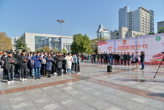 12月4日,是我国第六个国家宪法日,我校开展了以“弘扬宪法精神,厚植爱国主义情怀”为主题的国家宪法日暨第二个宪法宣传周系列宣传活动。副校长肖圣龙前往校园文化广场活动现场,并观摩了我校法学专业新生宪法宣誓仪式。