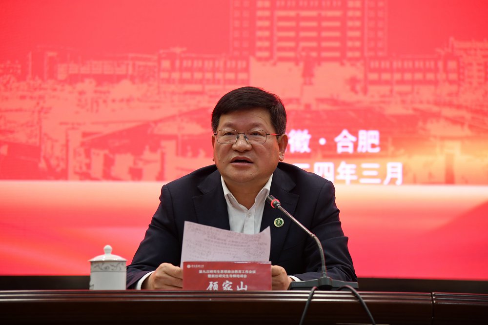 顾家山作题为《坚持立德树人、紧扣服务需求,扎实推进研究生教育高质量发展》的主题报告,总结学校研究生思想政治教育工作取得的成绩与经验,分析当前研究生思政工作面临的新形势和新挑战,并对下一步如何开展好研究生思想政治教育工作提出明确要求。他指出,全校上下坚持以习近平新时代中国特色社会主义思想为指导,深入落实习近平总书记关于教育的重要论述和对研究生教育工作作出的重要指示,坚持把立德树人作为中心环节,把思想政治工作贯穿教育教学全过程,在实施科教兴国战略、加快建设教育强国、培养担当民族复兴大任的时代新人新征程上,迈出高校思想政治工作坚实一步。