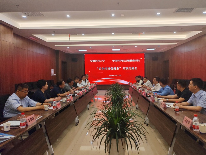 中国科学院合肥物质科学研究院健康所、肿瘤医院相关负责人,校学生处、党委研工部、药学院、基础医学院、卫生管理学院、公共卫生学院等单位负责人参加调研活动。(校2024届就业工作专班 龚晓倩)