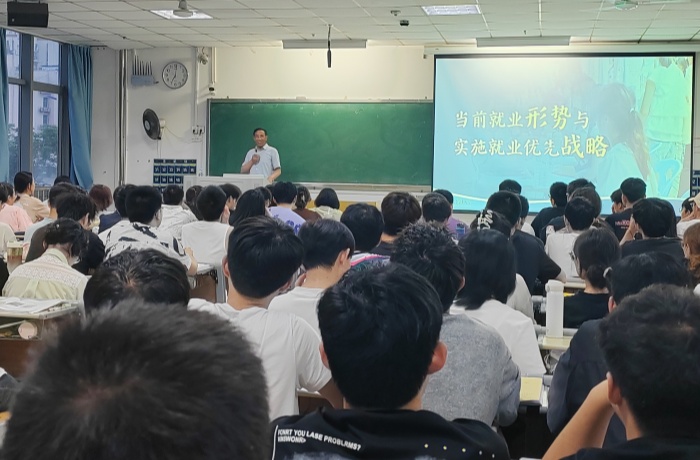 “悠悠万事,民生为重;民生福祉,就业为本。徐朝阳从“当前就业总体形势”“就业面临的短期风险和长期挑战”“实施就业优先战略的重要举措”等方面,为同学们介绍了我国当前面临的就业形势和采取的一系列就业举措。他指出,就业对于个人成长和国家发展十分重要,虽然当前就业面临诸多挑战,但我国仍然实现了就业规模不断扩大、就业结构持续优化、就业质量稳步提升,国家“稳就业政策的持续发力也为大学生就业提供了坚实保障。