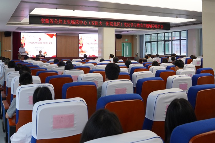 6月24日下午,校纪委书记、省监委驻校监察专员黄新美前往安徽省公共卫生临床中心(第一附属医院北区),为该院职工作题为《学习贯彻〈中国共产党纪律处分条例〉》的党纪学习教育专题辅导报告。