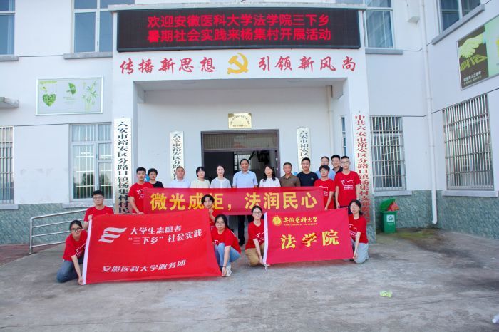 7月30日,副校长徐朝阳前往六安市裕安区分路口镇杨集村,慰问指导法学院“融法于心·普法躬行”暑期社会实践团队师生并座谈交流。