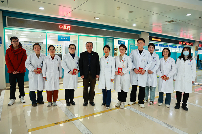 新春送祝福,慰问传温情。每一位医护职工倍感亲切和温暖,大家纷纷表示,一定不辜负领导和群众的期望,将切实履行好岗位职责,把好医疗安全关,做好病患救治工作,为人民群众的健康保驾护航,为学校的美好未来和医院高质量发展积极贡献力量。