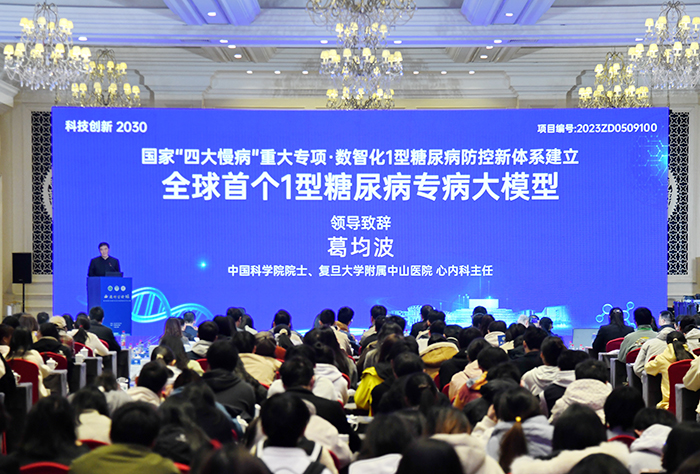 葛均波在致辞中表示,1型糖尿病专病大模型整合了血糖、代谢、生活方式等多维度数据,并通过“数字孪生”技术预测血管并发症风险,将糖尿病管理从单一的血糖控制,升级为代谢综合征与泛血管病变的协同防控。该模型基于数万例真实数据与专家知识库迭代,能够量化低血糖风险、预测酮症酸中毒,更能结合泛血管并发症的早期预警指标,为医生提供可解释的决策支持。他呼吁全球同行以泛血管医学的“整体观”为指引,以开放协作的胸怀,共同推动AI与临床医学的深度融合。