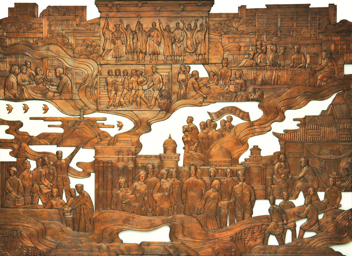 我校前身系私立东南医学院,脉传已八十六载,兹立浮雕述录如次: